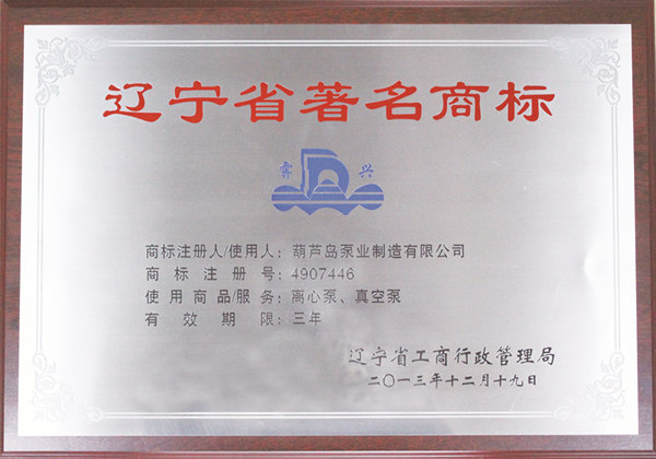 遼寧省著名商標(biāo)證書(shū)