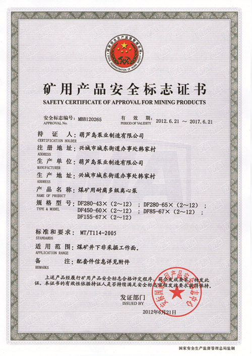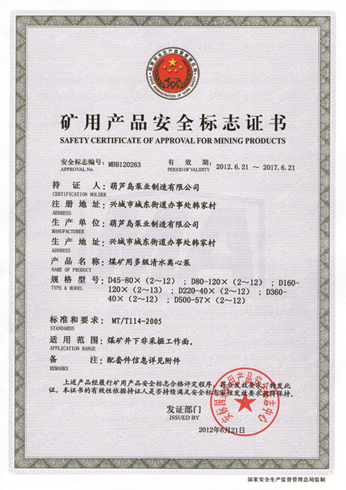 礦用產品安全標志證書